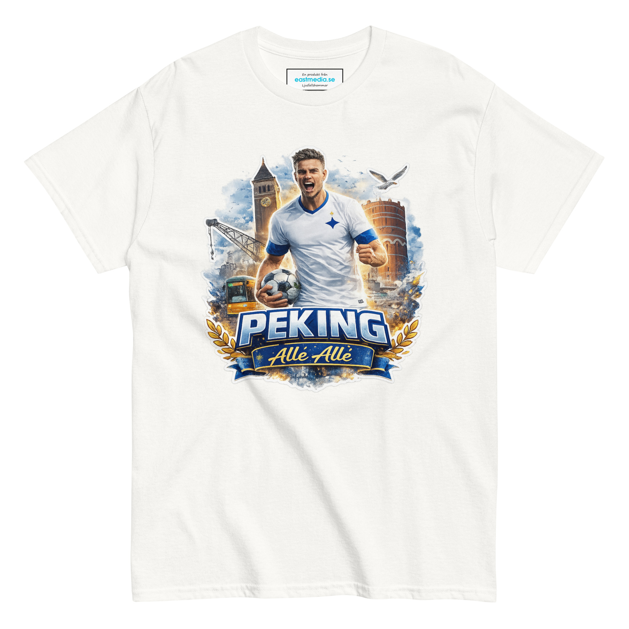 Klassisk unisex t-shirt i 100 % bomull hjälper dig att få en mer strukturerad look. Den sitter snyggt, har skarpa linjer runt kanterna och passar perfekt till fotbollsmatchen.